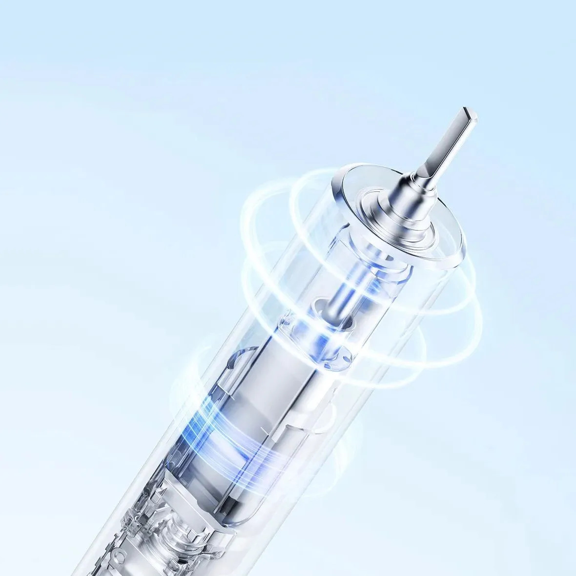Высокочастотная вибрация профессионального бесщеточного звукового двигателя обеспечивает огромную очищающую способность, а амортизирующая конструкция снижает колебания и уменьшает вибрацию, ощущаемую руками.