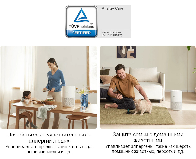 Умный очиститель воздуха Xiaomi Smart Air Purifier 4 Compact, сертифицированный TÜV Rheinland, доказал свою эффективность против аллергенов.