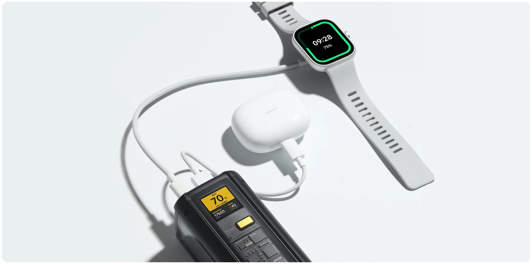 Мощный внешний аккумулятор с уникальным прозрачным дизайном и поддержкой быстрой зарядки. Оснащён тремя портами, включая два USB Type-C (140 Вт и 45 Вт) и USB Type-A (120 Вт), он позволяет заряжать до трёх устройств одновременно. С ёмкостью 25000 мАч (номинальная — 14 000 мАч) и удобным дисплеем для отображения уровня заряда, пауэрбанк обеспечивает быструю зарядку ноутбуков и смартфонов. Xiaomi заявляет, что он способен зарядить Xiaomi 14 Pro до 100% всего за 20 минут, делая его незаменимым спутником для современных пользователей.